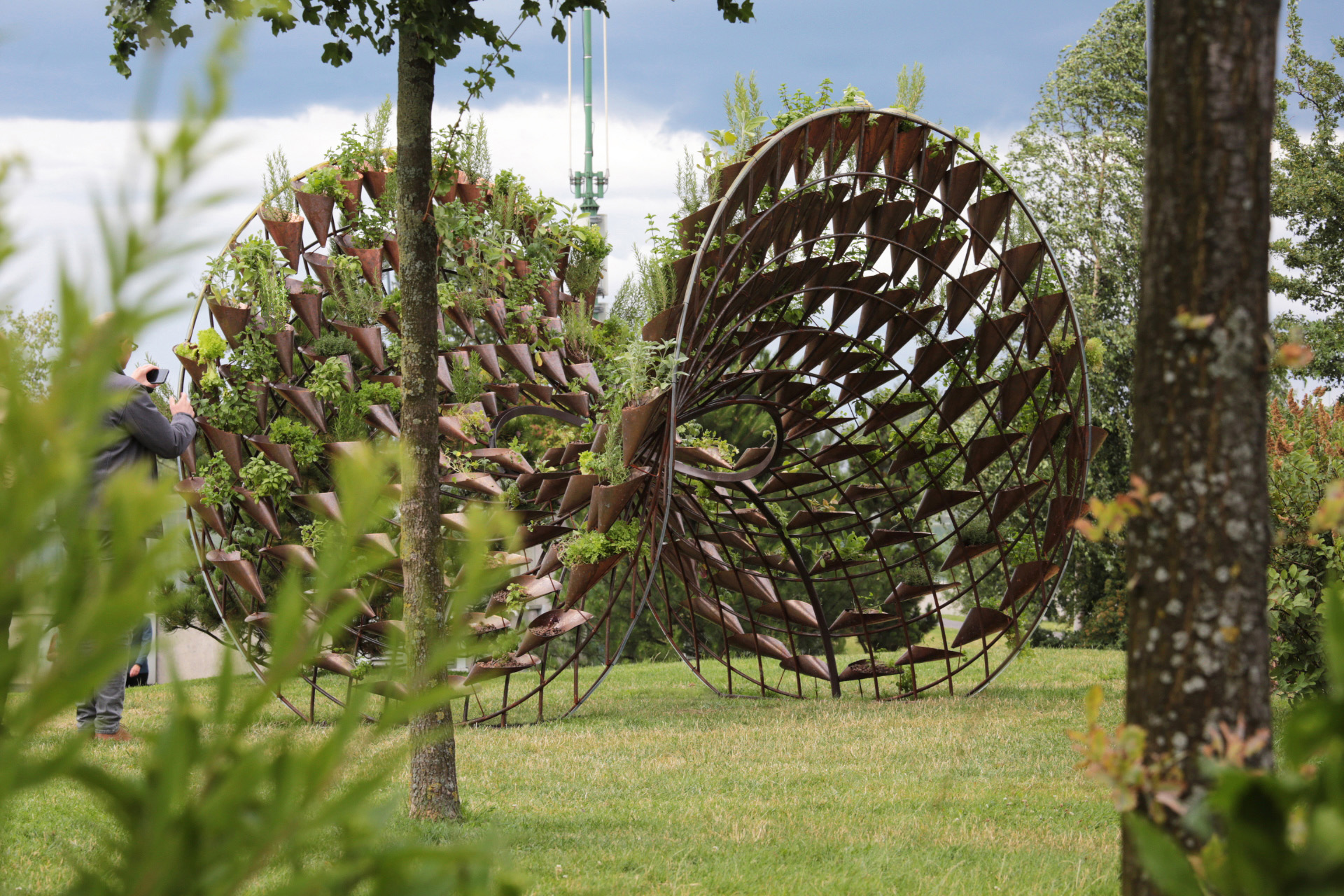 A temporary installation in the form of a vertical garden integrating an architectural structure and a hydroponic system supporting plants vegetation